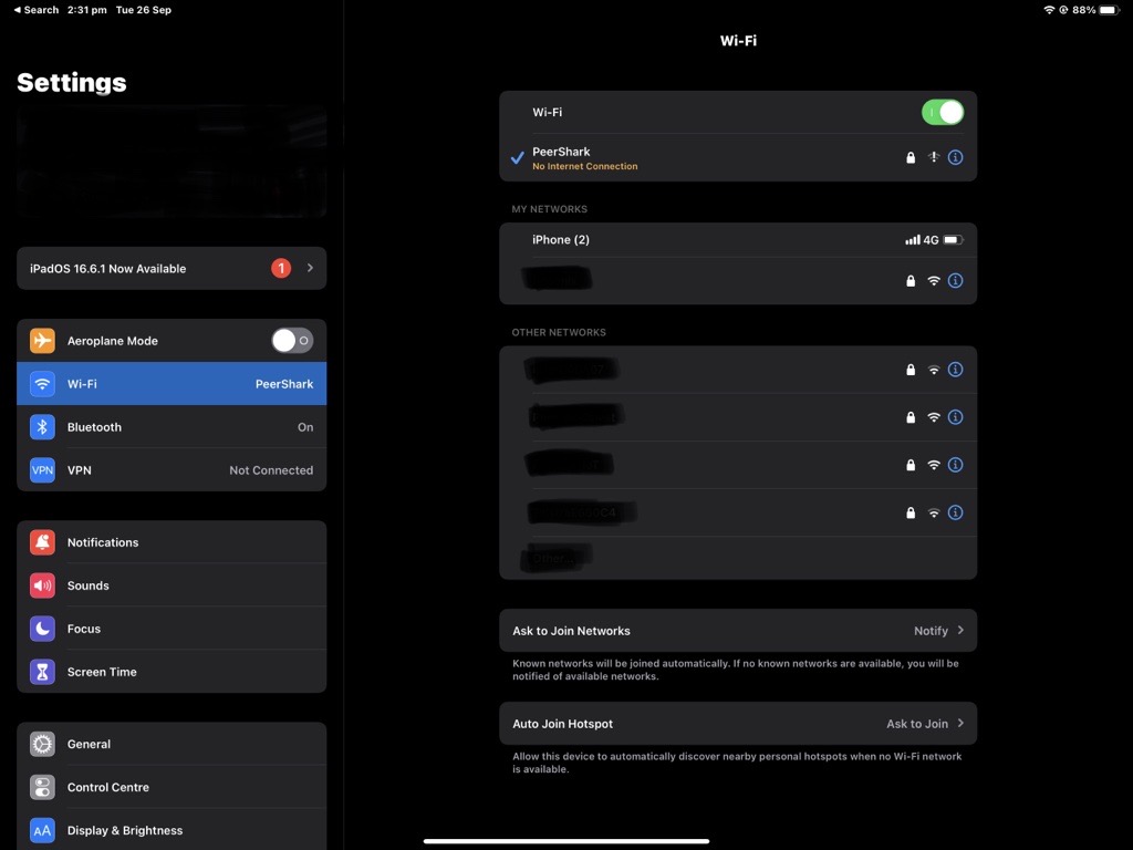 Find the PeerShark WiFi network and connect using the password PeerShark!